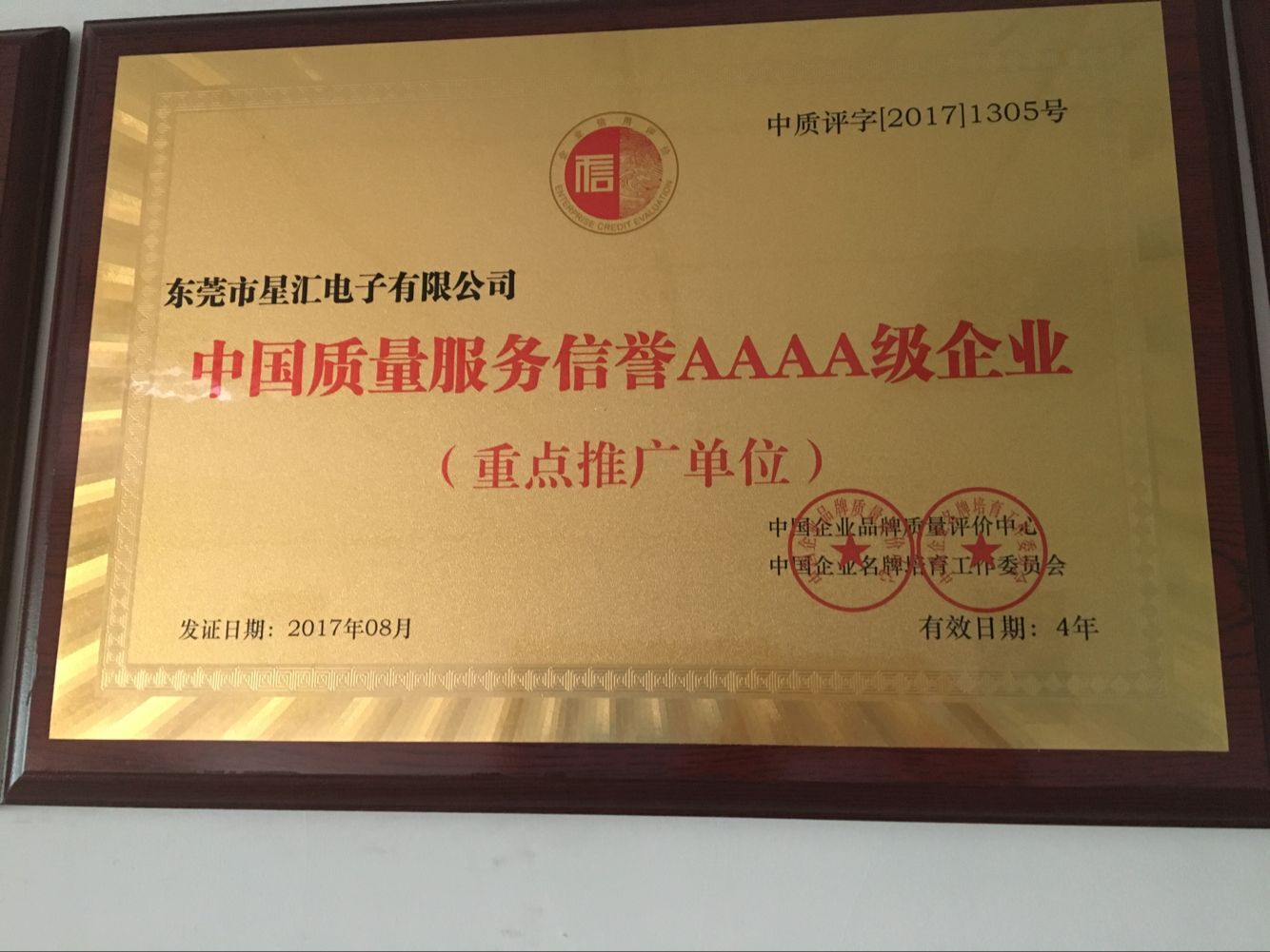 產品名稱:中國質量服務信譽AAAA級企業榮譽